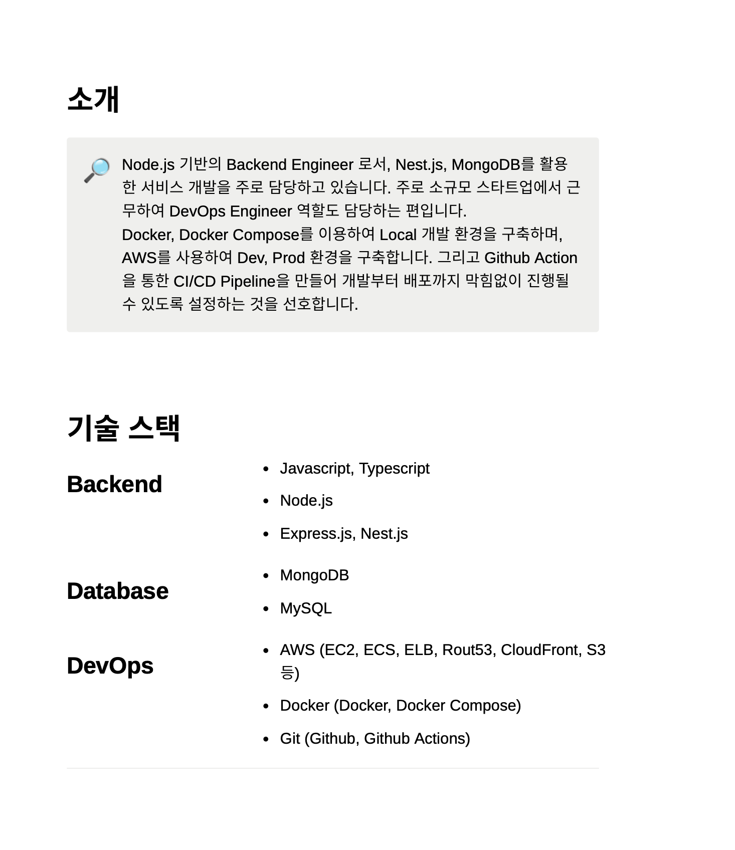 저는 현재 8년차 개발자로 작은 스타트업에서 주로 백엔드 업무를 담당하고 있습니다.