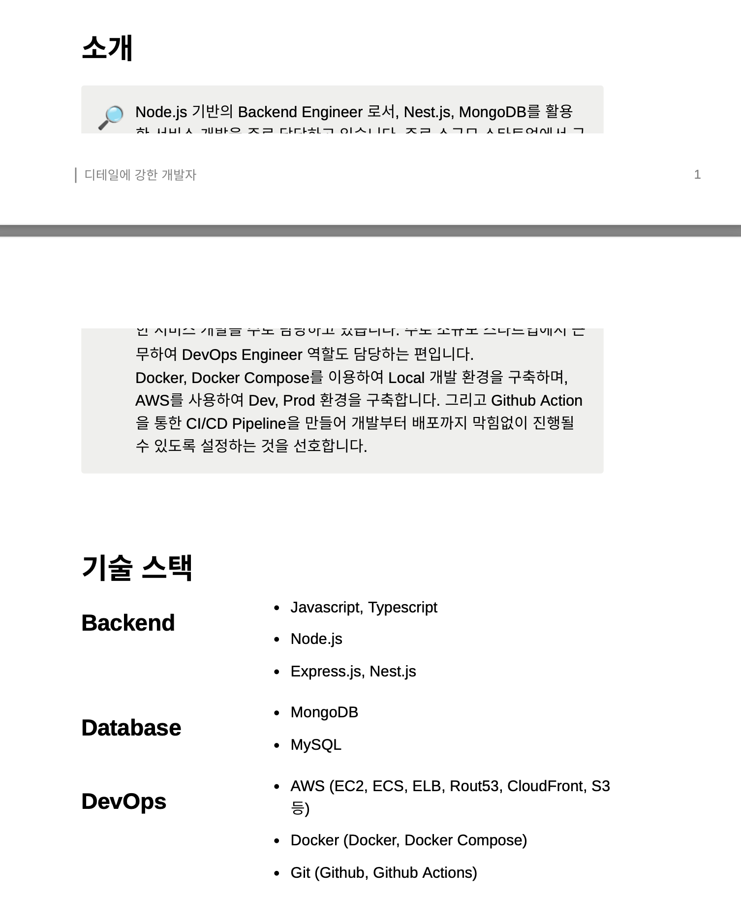 이번에 이력서 정리 겸 템플릿을 하나 만들어 봤습니다.
