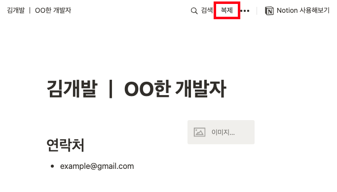 템플릿 우측 상단에 복제 버튼을 눌러서, 자신의 노션으로 복제를 합니다.