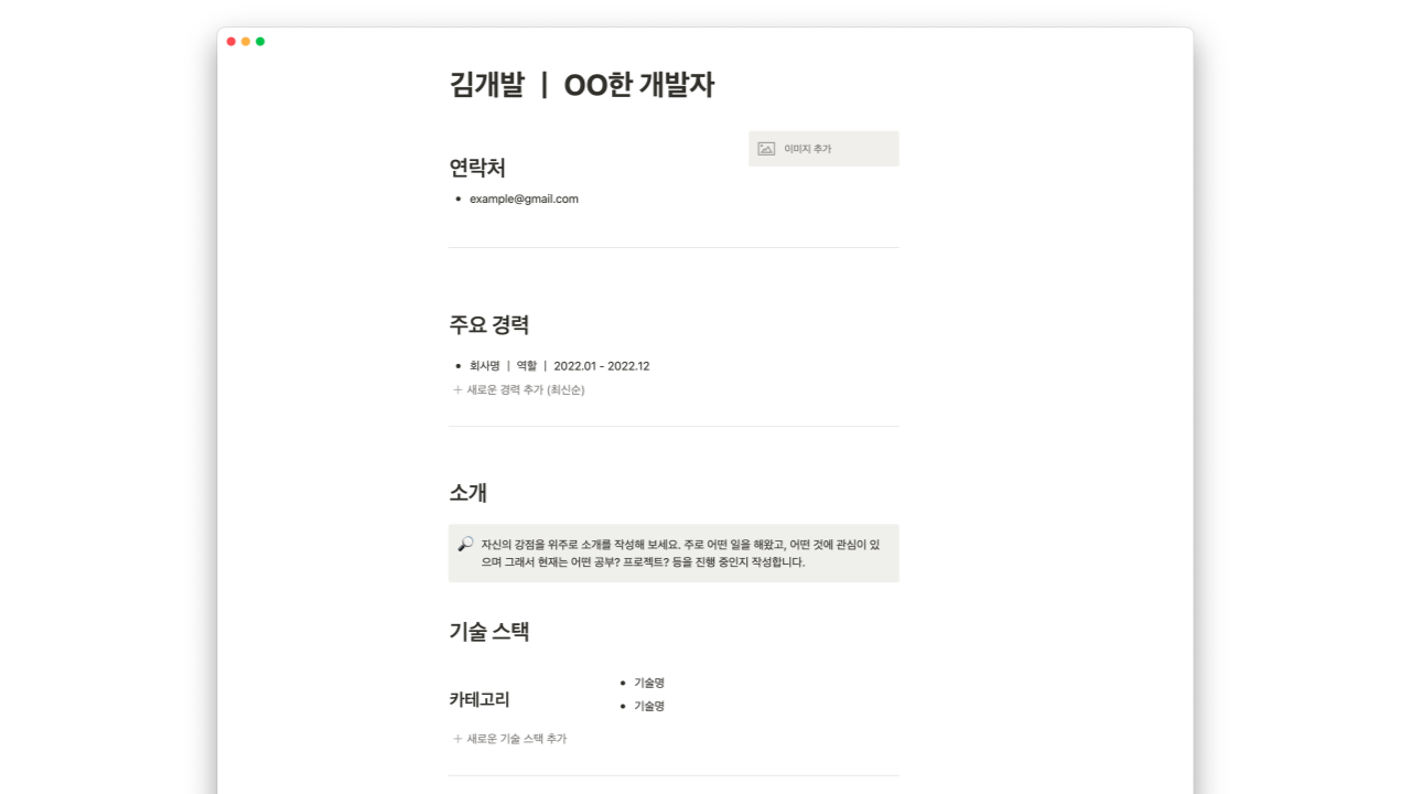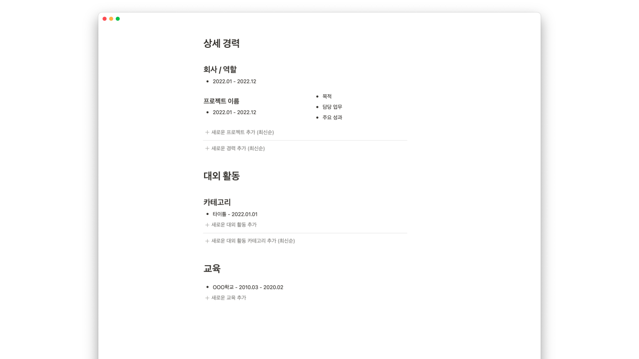 저는 노션을 이용해서 이력서 관리를 하고 있습니다.