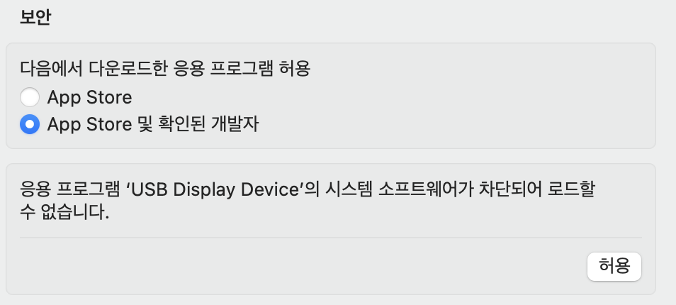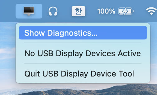 메뉴 막대의 모니터 모양 또는 앱 목록에서 USB Display Device를 찾아서 실행한다.