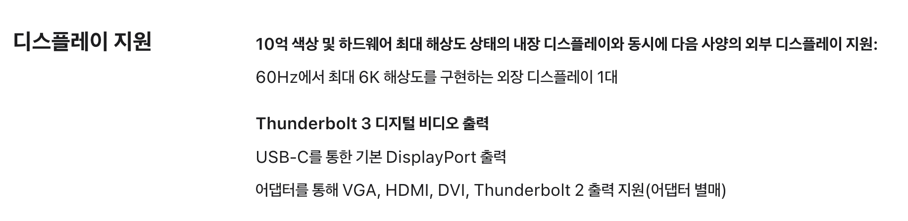 구매할 때 중요하게 봤던 것은 휴대성과 성능 그리고 썬더볼트(USB-C) 포트의 개수였다.