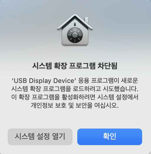 연결을 하면 아래와 같이 USB Display Driver를 활성화 하라는 메세지가 뜬다.