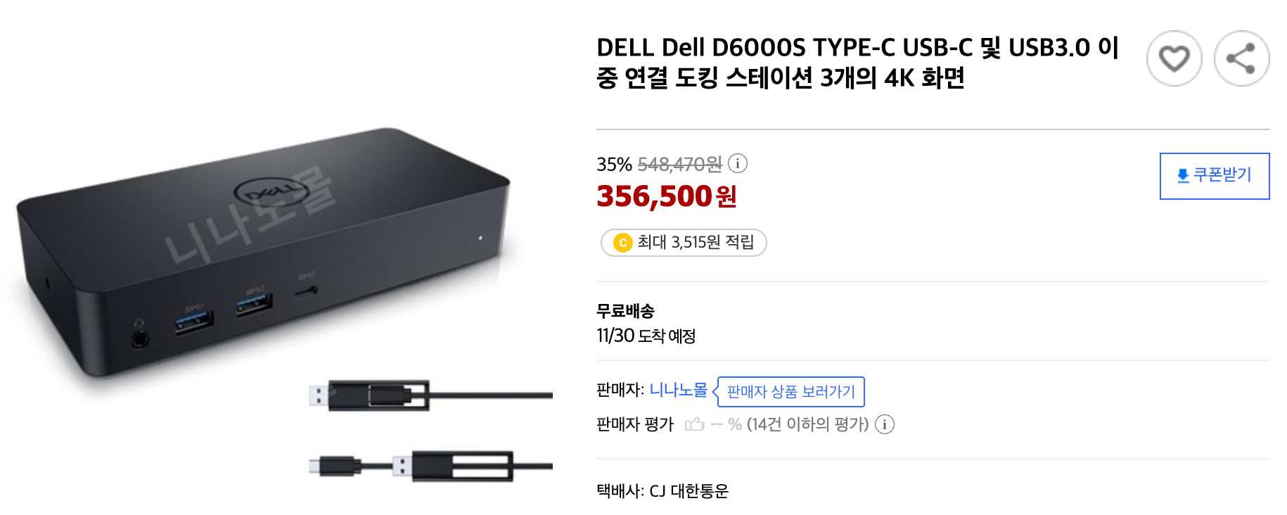 DELL Dell D6000S TYPE-C USB-C 및 USB3.0 이중 연결 도킹 스테이션 3개의 4K 화면